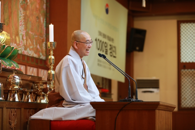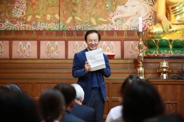 “스님, 법사님, 여러 실무자님들, 정말 정말 감사합니다. 그냥 감사하는 것이 아니라 너무너무 감사합니다. 올해 한 해도 활기찬 한 해가 되시고, 건강하시기를 바랍니다. 스님에게 특별히 건의드리고 싶은 것은 노인네들이 1년에 딱 한번 공양을 올리고 싶어 하는데 그러지 말라고 자꾸 야단을 치셔서 한 번도 마음 편하게 식사 초대를 못했어요. 정말입니다. 스님이 자꾸 식사 초대를 하지 말라고 그러시면 앞으로는 스님 모르게라도 식사 대접을 해드릴 겁니다.” (대중 웃음)