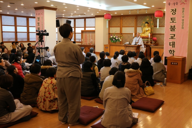 일기예보에서는 저녁부터 비가 내린다고 하여 울산에서 먼 길 오시는 분들이 혹여 불편하진 않을까 염려했지만, 비도 오지 않았고 봄이 온 것처럼 따뜻한 날씨가 밤까지 이어졌습니다. 마치 스님이 대중을 위하여 따뜻한 법문을 해주듯 봄의 온기가 법당에 스며든 것 같았습니다.