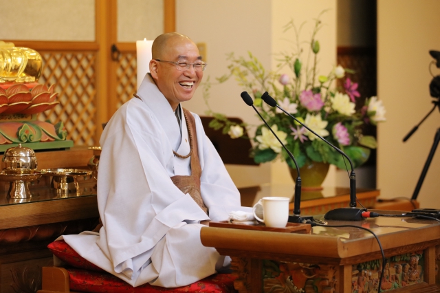 “여러분들 1년간 또 수고를 해 주시기 바랍니다. 웃으면서 해야 돼요. 수행자이기 때문에 웃으면서 합시다. 항상 스님하고 견주어서 ‘내가 스님보다는 더 행복해야지. 스님은 결혼을 했나, 아이가 있나, 재산이 있나? 그런데 내가 스님보다 행복하지 못할 이유가 뭐가 있나? 내가 스님보다 나이도 적은데’ 하고 생각해 보세요. 기준을 다른 사람으로 잡지 말고 스님으로 잡아야 돼요.