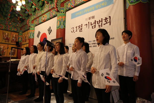 스님은 나라의 독립을 위해 생애를 바친 용성진종조사님의 행적에서부터 분단 70년이 흐른 오늘날의 국제정세까지 아우르며 3.1절을 어떤 마음으로 기려야 하는지 이야기해 주었습니다.