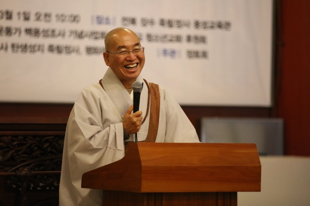 100년 전의 아픈 역사가 또다시 되풀이되고 있는 것 같다는 스님의 우려에 안타까운 탄식이 곳곳에서 흘러 나왔습니다. 하지만 선조들도 그 어려운 여건 속에서 분연히 일어났듯이 우리 또한 그 정신을 이어받자는 말씀은 더 큰 용기와 희망을 갖게 해주었습니다. 스님의 감로 법문에 대중들은 큰 박수갈채로 공감을 표했습니다.
