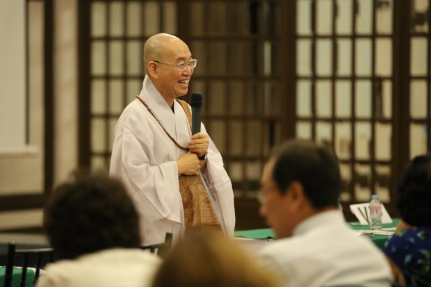 스님의 명쾌한 답변에 질문한 학생은 큰 목소리로 감사 인사를 하고 자리에 앉았습니다. 청중들도 박수를 보내며 학생을 격려해 주었습니다.