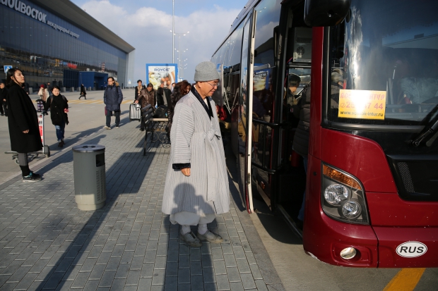 블라디보스톡 공항에 도착하자 국제한민족재단에서 실무자 두 분이 대형 버스로 마중을 나와 참석자 일행 모두를 숙소로 데려다 주었습니다.