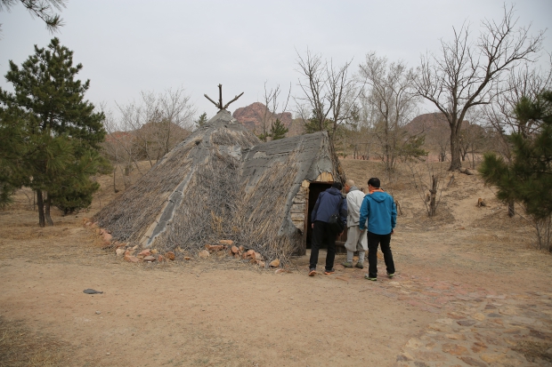 스님은 움막집 속에 들어가 당시의 생활상에 대해 잠시 설명해 주었습니다. 땅을 깊게 파고 그 위에 움막을 덮었는데, 땅을 깊게 판 이유는 추위와 더위를 막기 위해서라고 합니다. 움막집의 가운데에는 불을 피운 흔적도 볼 수 있었습니다.