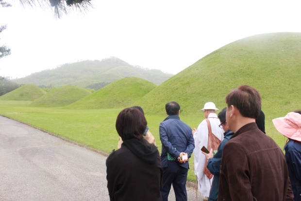 새벽 6시에 서울에서 출발한 평화리더십아카데미 수강생들은 11시가 다 되어 경주 법흥왕릉에 도착했습니다. 스님은 법흥왕릉에 도착한 수강생들을 환한 웃음으로 반겨 주었습니다.