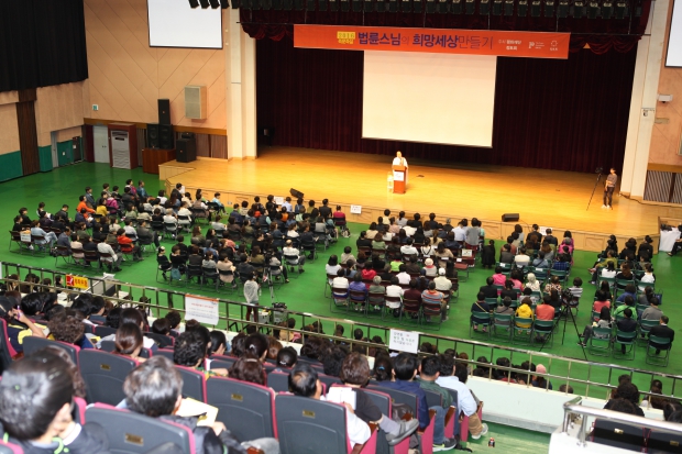남의 부부 사는데 신경 끊으라는 스님의 명쾌한 답변에 청중들은 배꼽을 잡고 웃었고, 질문한 여성분도 스님 말씀을 잘 이해한 듯 환하게 웃으며 감사 인사를 했습니다.
