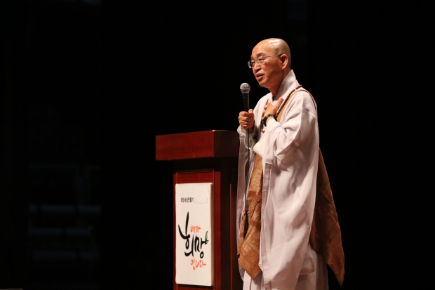 질문자가 스님의 말을 잘 이해하지 못해 문답이 조금 길어지긴 했지만, 마침내 질문자는 그 뜻을 이해하고 밝은 미소를 내비쳤습니다. 이 모습을 본 청중들도 뜨거운 박수갈채를 보내주었습니다.