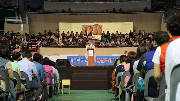 스님의 간곡한 당부에 우레와 같은 박수갈채가 쏟아졌습니다.