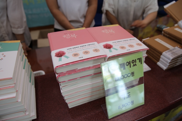 무대 밑으로 내려 온 스님은 청중들 한 분 한 분에게 악수를 건네며 사인회 자리로 이동했습니다. 스님의 신간 ‘행복’ 책이 큰활자본으로 나온 책이 인기가 많아 가장 먼저 매진이 되었습니다.