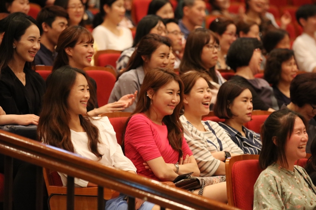 저녁 7시가 되자 꾀꼬리극장은 600여 명이 청중들로 가득 찼습니다. 스님이 등장하자 환호와 함께 박수가 터져나왔습니다.