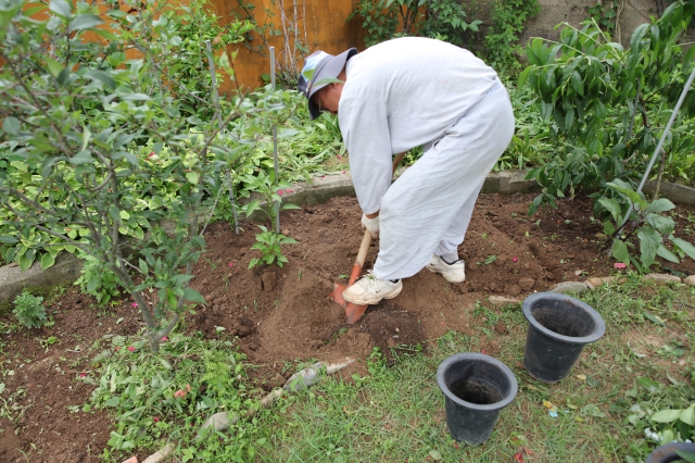 땅을 파고 화분 모종을 통째로 옮긴 후 흙으로 덮어 둔턱을 만들어 주었습니다. 이 모습을 보고 한 분이 “스님 덕분에 니들이 호강한다” 하고 좋아하니 스님은 “화분에 있을 때는 뿌리가 뻗지를 못했는데, 땅에 옮겨 심었으니 이제 뿌리가 마구 뻗어나갈거야.” 하며 둔덕을 더 높이 만들어 주었습니다.