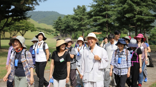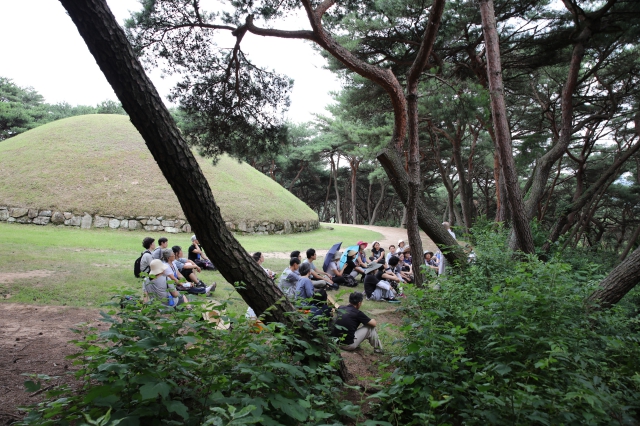 첫 번째 순례지인 법흥왕릉에서는 신라와 가야의 합의통일이 가져온 시너지 효과를 소개하면서 이것이 지금의남북 통일에 시사하는 점을 설명했습니다.