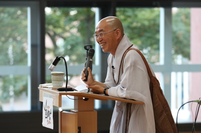 행복의 스승이 되어보라는 스님의 권유에 청중들은 기쁜 마음이 되어 큰 박수로 호응했습니다.