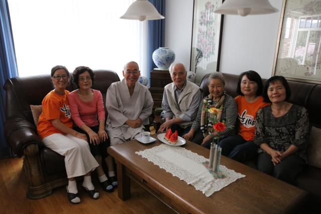 그리고 프랑크푸르트 정토법회에서 불교대학 팀장을 맡고 있는 추희숙님은 독일인 남편분과 함께 스님을 프랑크푸르트에서 뒤셀도르프까지 모셔다 주기 위해 차량을 가지고 왔습니다. 스님은 두 부부에게도 감사 인사를 한 후 함께 기념사진을 찍었습니다.