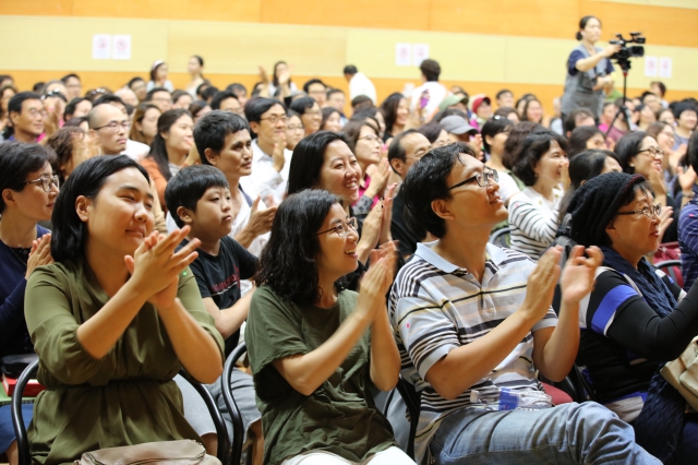 3시간 동안 열강을 해준 스님에게 다시 한 번 뜨거운 박수갈채가 쏟아졌습니다. 박수를 치는 청중들 모두의 얼굴에 웃음과 기쁨이 가득해 보였습니다.