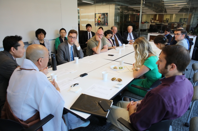 미팅 후 오후 4시부터는 워싱턴DC에 파견나와 있는 한국 언론사 특파원들과 간담회 시간을 가졌습니다. 추석 연휴 기간이라 대부분의 기자들이 참석하지 못하고 연합뉴스를 비롯해 3개 언론사만 참석했지만, 심도 있는 얘기를 나누었습니다. 스님은 워싱턴을 방문할 때마다 특파원들과 간담회를 통해 세계 정세, 동북아, 한반도, 미국 국내 상황 등 여러 가지 분야에 대해 서로의 의견을 나누는 시간을 가지고 있습니다.