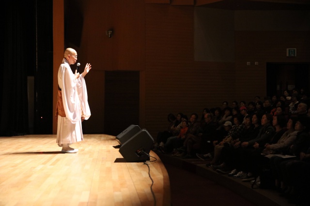 “인생을 어떻게 살아야 할까요? 자기 좋을 대로 살면 됩니다. 자기 좋을 대로 살았는데 결과가 괴로운 것이 문제입니다. 왜 이렇게 힘들까 고민하다가 남편을 원망하고, 사주를 탓합니다. 그러나 싹이 트려면 씨앗이 좋아야하고 밭도 좋아야합니다. ‘어떻게 하면 자기를 행복하게 할까?’는 씨앗을 좋게 하는 일이고, ‘내가 사는 사회를 어떻게 좋게 만들거냐?’는 밭을 좋게 하는 일입니다. 사회적인 것은 오늘 오신 시장님, 국회의원님이 하실 일이고 저는 똑같은 조건에서도 여러분들이 행복할 수 있는 길은 무엇일까를 나눠보고자 합니다. 오늘 대화를 통해 행복도를 높여봅시다.”