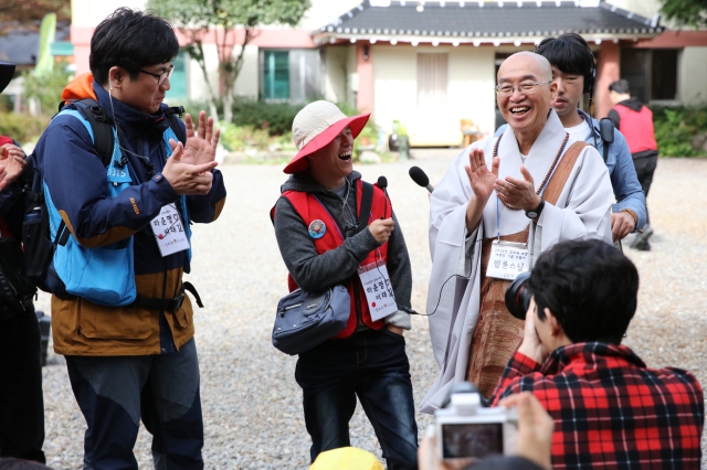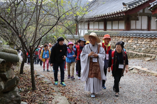 여러분들과 함께 이 아름다운 절을 산책할 수 있어서 저도 감사하게 생각합니다. 오후에는 순천만 습지에 가서 산책을 하게 됩니다. 오늘 즐거운 하루 되시기 바랍니다.”