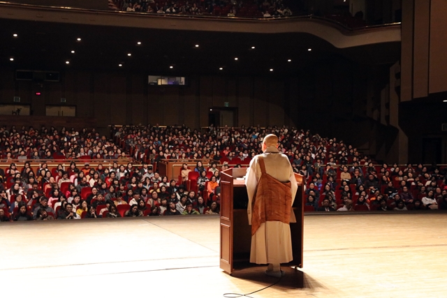 대화를 마친 후 스님은 우리나라의 행복도를 높이는 일을 함께 해보자고 강조하면서 강연을 마쳤습니다.