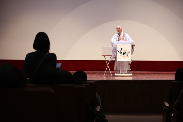 행복강연이 집중적으로 열리는 상반기 시기에는 외부 강연 일정이 나지 않는데 이번에는 인연이 닿았나봅니다. 실은 충남도청이 처음 개청했을 때도 스님을 청해서 강연을 했다고 하는데 그 인연이 닿아서인지 스님도 충남도청이 익숙해보였습니다.