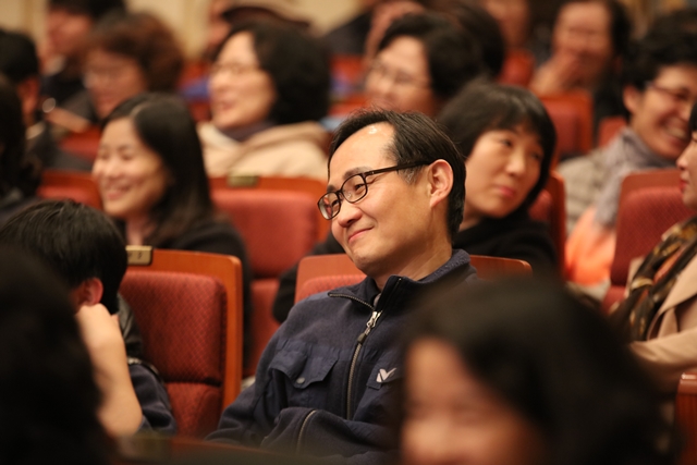 양천 문화회관 2층에 마련된 대극장에 들어서니 1층과 2층 객석에 남녀노소, 가족단위로 사람들이 꽉 차 있었습니다. 객석이 다 차서 1층 복도와 무대 앞 공간에도 깔개를 깔고 사람들이 자리를 잡았습니다.