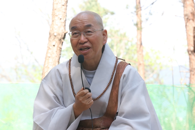 염불사지에서 전체 대중이 간절하게 발원하는 시간을 가졌습니다. 발원의 시간 후, 스님은 다시 한 번 행사준비를 위해 애쓰신 대중들을 소개하여 감사의 마음을 전했습니다.