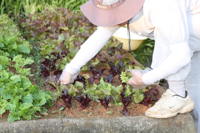 스님은 다음에 심을 때는 조금은 여유 있게 심어야겠다는 이야기를 상추 잎을 솎아주며 하였습니다. 씨앗이 작아 뿌리듯이 심었는데 자랄 공간이 좁아서 하나하나 속이 차지 않고 서로 치이게 된다고 설명해주었습니다. 바깥 밭에서 심은 상추와 온실에서 심은 상추를 모두 솎고, 청경채와 겨자채, 열무를 솎아내니 양이 매우 많았습니다. 아침 공양에 먹을 양만 남기고 흙을 잘 털어서 포장 하였습니다. 포장한 야채는 상자에 넣어 최대한 햇빛에 노출되는 시간을 줄여 수련 공양간의 큰 냉장고에 우선 넣어두었습니다.