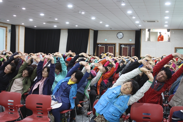입구 오른쪽 당산나무 아래 모여 몸 풀기 등 준비 운동을 하고 있던 회원들이 스님을 반갑게 맞이했습니다. 오늘이 투표일이라 투표는 하고 왔는지 물으며 자연스럽게 이야기를 시작하였습니다.