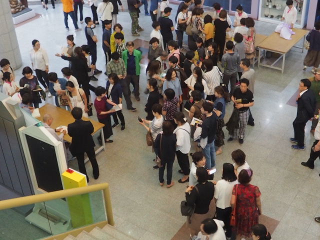 2시간이 넘는 강연을 마친 스님은 곧바로 로비로 나와서 스님의 책을 들고 줄지어 있는 사람들에게 정성껏 사인을 해주었습니다.