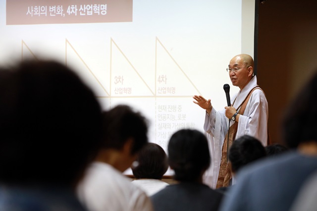 스님은 스크린에 띄어진 대명제로 강의를 시작했습니다.