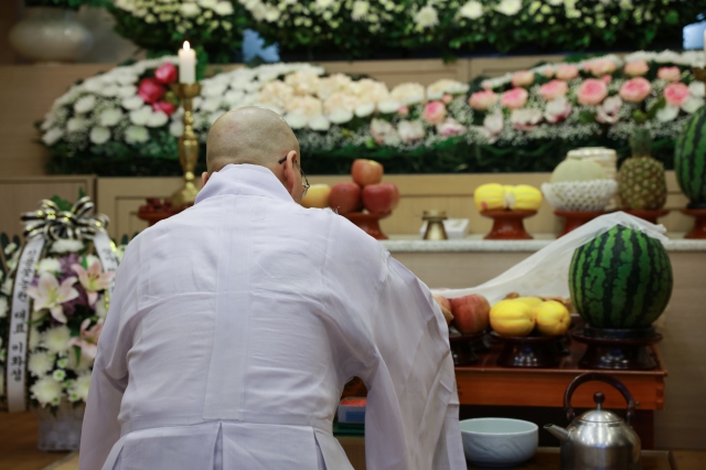 스님과의 문답으로 영가가 괴로움으로부터 영원히 벗어나셨기를 바라면서 이어지는 기도 의식까지 모두 마쳤습니다.