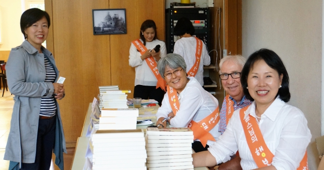 사인회를 마치고 스님은 2014년 세계 100강을 기념하여 펴낸 <야단법석 1>에 사인해서 박향숙님과 하인즈님께 선물로 드리고 여기에 하인즈님의 인터뷰가 실려있다고 하면서 다시 한 번 감사함과 반가움을 표했습니다.
