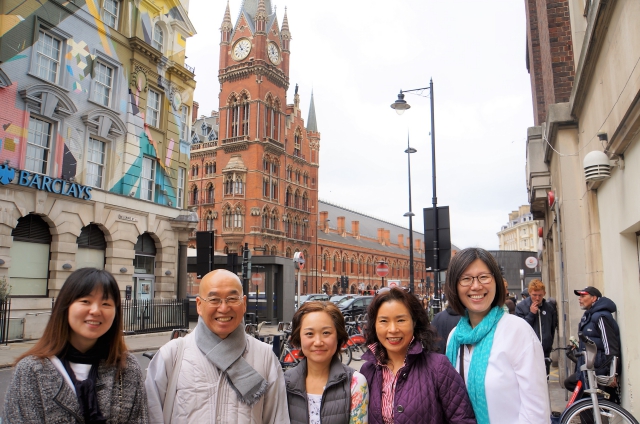 파리에서도 주차와의 전쟁처럼 보였는데 런던도 대도시라 마찬가지입니다. 어제까지 날씨가 좋았다고 하는데 하늘은 잔뜩 흐려 있고, 독일의 날씨처럼 약간 추웠습니다. 마중나온 분들과 함께 스님은 런던 생판크라스역을 배경으로 기념촬영을 하고 강연 전까지 휴식을 취할 전명진님댁으로 이동하였습니다.
