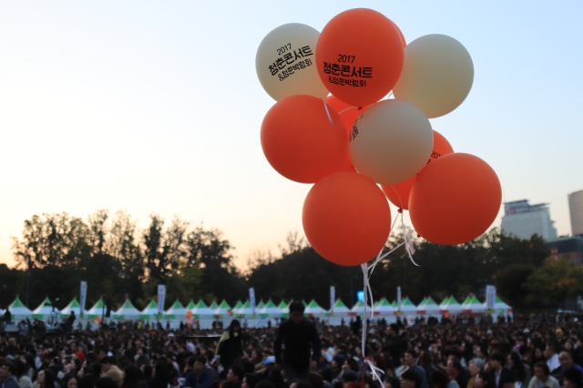 2017 청춘 콘서트의 개막을 알리는 사회자의 개회사에 이어 축하공연이 시작되자 시청 앞 광장은 그 어느 때 보다도 젊은 청춘들의 열기로 가득했습니다. 청년들은 박원순 시장의 현실토크에서 대한민국의 미래를 꿈 꿀 수 있었습니다. 그리고 바로 이어진 스님의 공감토크에서는 삶에 대한 꿈을 꿀 수 있는 용기를 얻을 수 있었습니다.