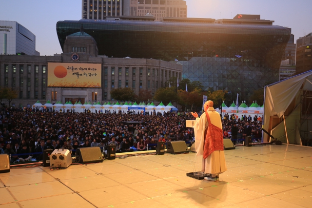 한 시간 남짓 즉문즉설을 한 후 스님은 11월 5일에 있을 전쟁반대 평화 시민대회가 있을 장소를 둘러보기 위해 잠시 광화문 근처 세종로까지 도보로 이동했습니다.