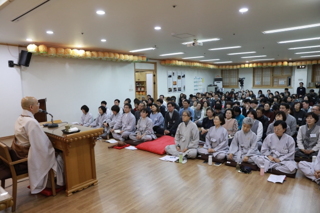 “반갑습니다. 올겨울 감기가 유행이었는데 다들 건강하게 잘 지내셨나요? 정초법회에서 법당 안에서 정토행자들의 활동을 가까이서 뵈니 더욱 좋습니다. 1년 만에 만나보니 개인적인 어려움을 극복했거나 아직 진행 중임에도 밝게 생활하시는 모습, 오랜만에 뵙는 노보살님들이 1년을 편안히 넘기신 모습, 소임을 맡아 바쁜 가운데 건강한 모습을 보니 감사하고 ‘공부가 이런 거구나!’ 하는 생각을 하게 됩니다. 오늘 지도법사님 뵙고 새해 인사도 드리고 수행 관점을 새롭게 하고 행복한 1년을 살아가시기 바랍니다.”