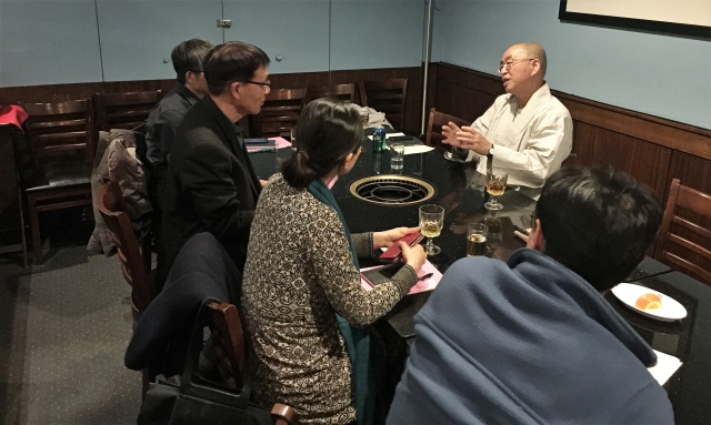이어 오늘 마지막 일정으로 워싱턴 디씨에 파견 나와 있는 한국 언론사 특파원들과의 간담회 시간을 가졌습니다. 스님은 워싱턴을 방문할 때마다 특파원들과의 간담회를 통해 세계정세, 동북아, 한반도, 미국 국내 상황 등 여러 가지 분야에 대해 서로의 의견을 나누는 시간을 가지고 있습니다. 오늘은 폭설로 인하여 연방정부도 문을 닫은 상태라 많이 참석하지는 못했지만 최근 급박하게 돌아가고 있는 한반도 상황에 대해서 심도 있는 얘기를 나누었습니다. 특파원들도 지난 2주 정신없이 바빴다고 하였습니다.