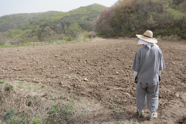 스님은 장갑을 낀 후 곧바로 농사일을 시작했습니다. 오늘은 겨자채, 브로콜리, 상추, 치커리 4종류의 씨앗을 밭에 심었습니다. 일정한 간격을 두고 호미로 땅을 판 후 손가락만 한 크기의 모종들을 하나씩 땅 속에 넣은 후 흙으로 덮었습니다.