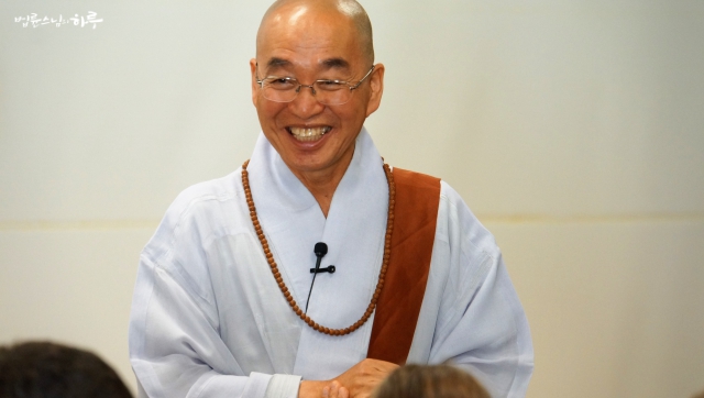 그리고 두 번째로는 제가 하는 즉문즉설이 앞으로 유명해질 거예요.(청중 웃음) 이것을 알아들으려면 한국어를 해야 합니다. 제가 60이 넘어서 영어를 배우기도 힘들고, 여러분들이 스님의 즉문즉설을 알아듣기 위해서라도 한국말을 알아야 합니다. 알았죠?"
