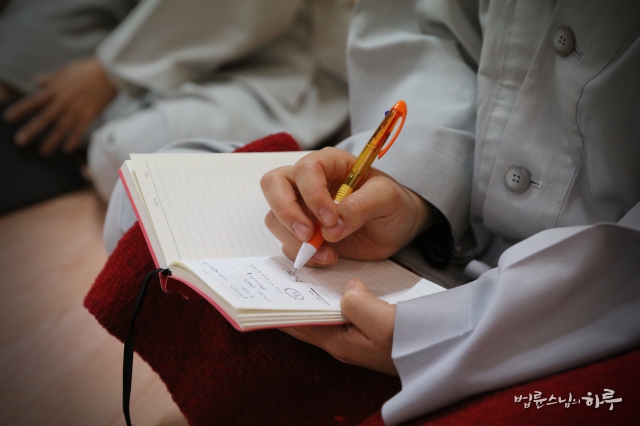 스님의 목소리는 잔잔했지만, 그 내용은 서릿발 같았습니다. 행자님들도 졸지 않고 집중해서 법문을 들었습니다. 또 수행을 하면 신통력이 생기는 건지 궁금하다는 질문에도 불교와 그 가르침을 따르는 것이 어떤 것인지 스님은 명확히 알려주었습니다.