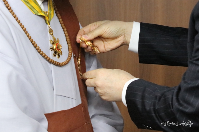 안녕하세요. 오늘 스님은 대한민국 정부에서 수여하는 국민훈장 모란장을 수상했습니다.