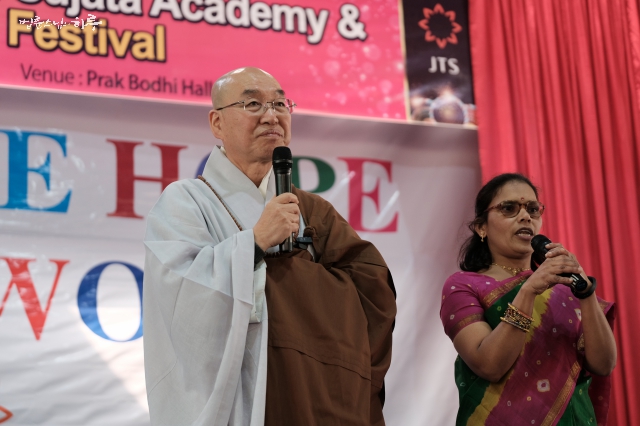 마지막 공연에서는 아이들이 법륜스님과 여러 귀빈들을 모시고 무대 위로 올라와서 꽃목걸이를 걸고 “세상을 함께 치유하자”는 노래를 부르며 함께 어울리는 모습을 보여주며 대미를 장식하였습니다.
