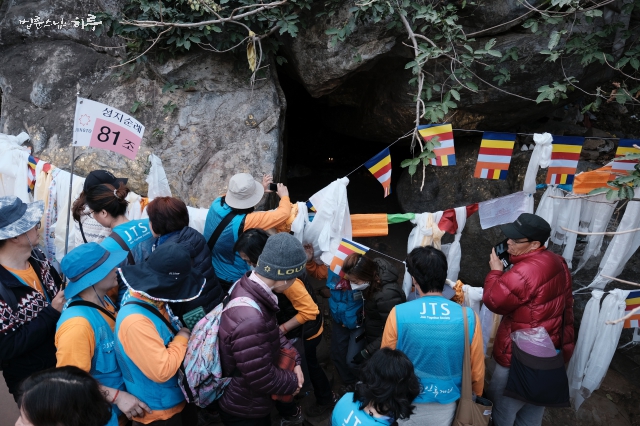 영축산 정상에는 신기하게도 여러 크고 작은 굴들이 많이 있었는데 이 곳에는 부처님의 제자들이 수행하였다고 합니다. 그래서 굴 이름도 제자들의 이름을 따서 아난다굴, 사리불굴, 목련굴, 마하가섭굴 등으로 불렸고 참배도 했습니다.