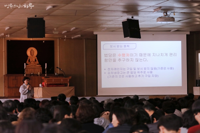 지금도 각 지역 법당은 여러분들에 의해 운영되고, 여러분에 의해 대표가 뽑히고, 모든 사항들이 여러분에 의해서 결정되고 있잖아요. 이렇게 정토회는 대중이 주체가 되는 방식으로 운영해왔습니다.