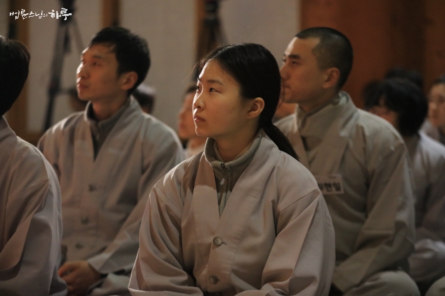 요즘 같은 세상에 여기 이 두 행자와 같은 사람들이 잘 없어요. 다 자기 이익 추구하고, 결혼해서 자식을 놓고도 헤어지고, 직장도 마음에 안 들면 사표 던지고, 부모가 그렇게 아끼고 키워줬는데도 마음에 안 든다고 집을 나오는 게 요즘 사람들이란 말이에요. 그런 세상에서 백일 출가한다고 여기 와서 만 배 하는 건 대단한 일이에요.(모두 웃음과 박수) 비록 만 배하다가 도망가더라도 도전해봤으니까 대단한 사람이에요.