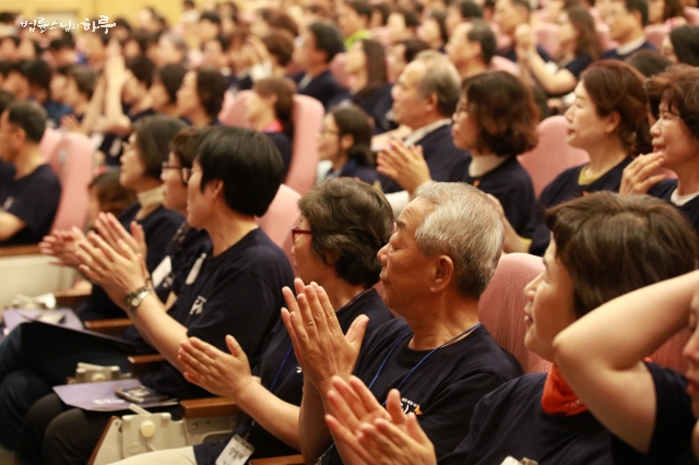 법문을 마치고 스님이 다시 무대로 올라 오늘 통일의병대회를 준비한 분들을 소개했습니다. 선배 통일의병 150여 명이 오늘 행사를 준비해주었습니다. 동국대 대강당 좌석이 5백 석뿐이라 선배들은 밖에서 법문을 듣거나, 오전 행사만 참여하고 가기도 했습니다. 신규 통일의병은 큰 박수로 고마운 마음을 전했습니다.