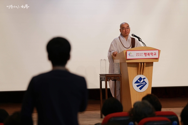 강연장에 함께 자리한 많은 청중이 박수로 호응했습니다. 부모 재산에 대한 스님의 비유가 귀에 쏙쏙 들어왔습니다.