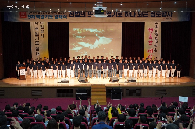 안녕하세요. 오늘은 정토회가 이 세상에 모든 고통을 극복하고 바로 이 땅에 맑은 마음, 좋은 벗, 깨끗한 땅을 실현하고자 큰 서원을 세우고 시작한 만일결사 중 제9차 천일결사 중 제9차 백일기도 입재식이 열렸습니다. 8,800일째 기도를 회향하고 새로운 백일을 시작하는 날입니다.