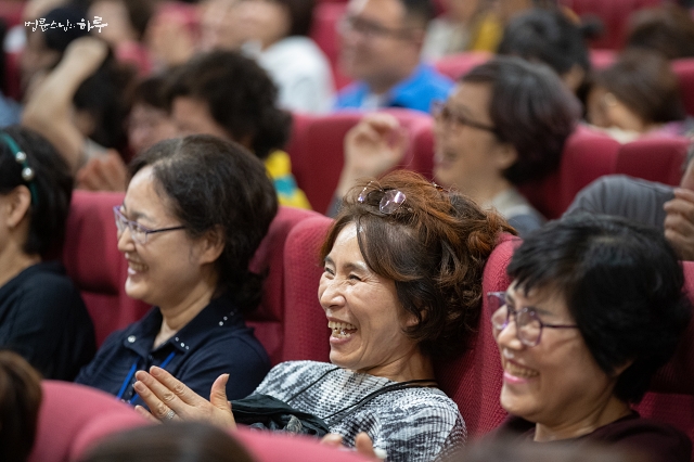 오후 1시부터는 스님과 함께하는 생방송 행복학교가 시작되었습니다. 먼저 행복학교 학생 두 분의 축하 공연이 있었습니다. 두 분은 연세가 80세가 넘으셨는데도 ‘살풀이’와 ‘판소리 사랑가’를 무용공연으로 멋지게 보여주어 큰 박수를 받았습니다.
