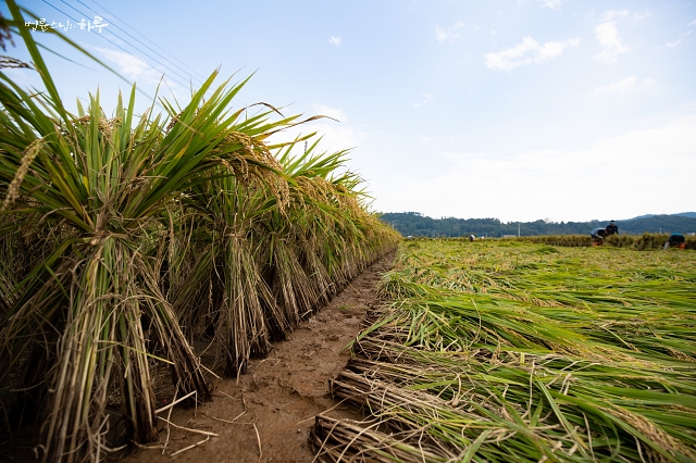 그래도 마지막에 주위를 살펴보니까 벼를 묶는 짚이 다 떨어졌더라고요. 그리고 저 멀리 보니까 먹구름이 몰려오고 있었어요. 그래서 그 시간에 일을 끝낸 거예요. 진짜 수고 많으셨습니다. 그렇게라도 우리가 할 수 있는 만큼 도와줄 수 있어서 마음은 가볍습니다.